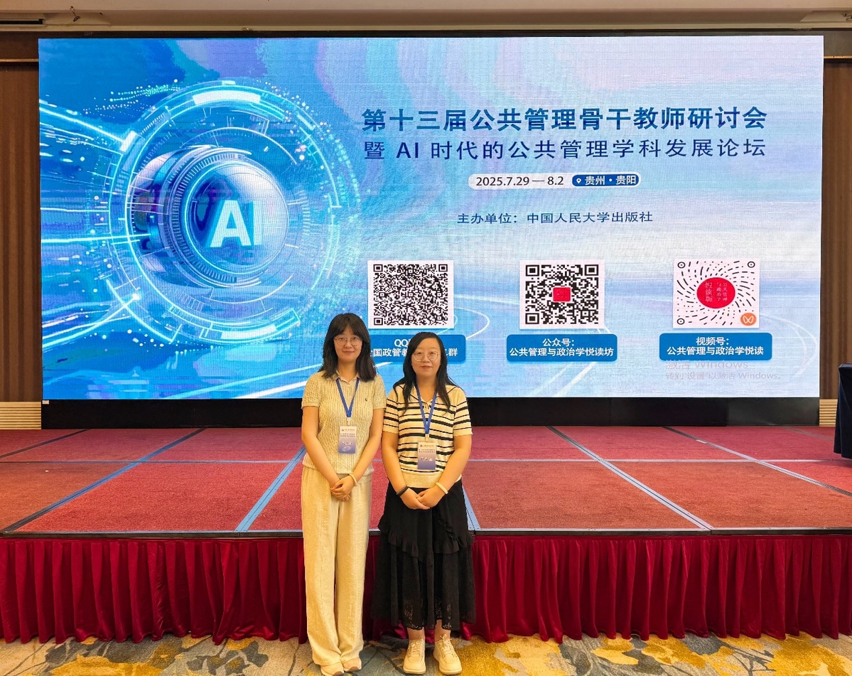 2025年7月29日—8月2日,由中国人民大学出版社主办的第十三届公共管理骨干教师研讨会暨AI时代的公共管理学科发展论坛在贵阳举行。本次论坛聚焦AI时代公共管理学科的发展,吸引了公共管理学、政治学及相关学科的众多学界同仁参与,公司公共管理系教师张景淇、汪佳颖参加了此次会议。