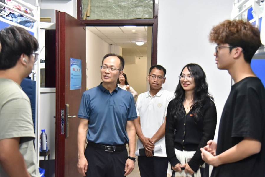 走访中,公司和公司领导逐间查看宿舍设施,关切询问新生“住宿是否适应”“有无生活难题”,反复叮嘱用电安全与宿舍卫生,提醒大家尽快融入集体生活。针对新生关心的专业学习方向、社团选择、时间分配等问题,老师们结合学科优势与校园经验细致解答,鼓励大家明确目标、积极探索。