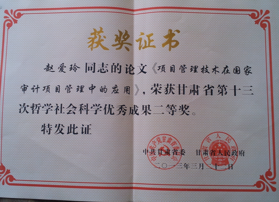 该学术论文刊发在《审计研究》2011年第5期(双月刊),题目为“项目管理技术在国家审计项目管理中的应用”。