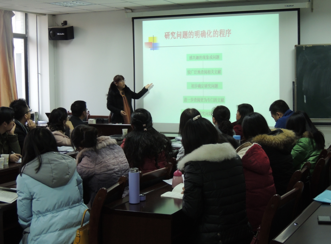 会上,张永丽教授对青年教师和研究生们关心的“如何选题、选题的具体方法和选题过程中产生的问题及相应的解决办法”进行了详细讲解,结合自身科研经历,向大家分享她对《课题研究:选题、方法及过程》的认识。张永丽教授鼓励公司全体教师、研究生积极申报科研项目,参与学术研究,提升科研水平,并对部分青年教师、学术型硕士研究生反映的在科研过程中所遇到的问题,耐心讲解,提出合理建议。