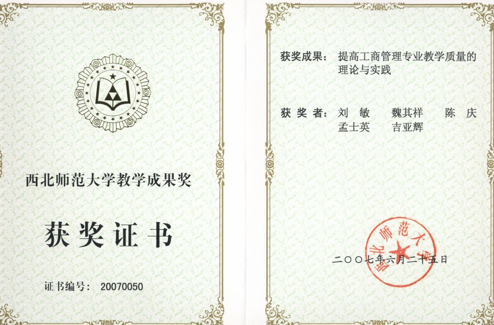 15.2004年,甘肃省优秀教学成果厅级奖.