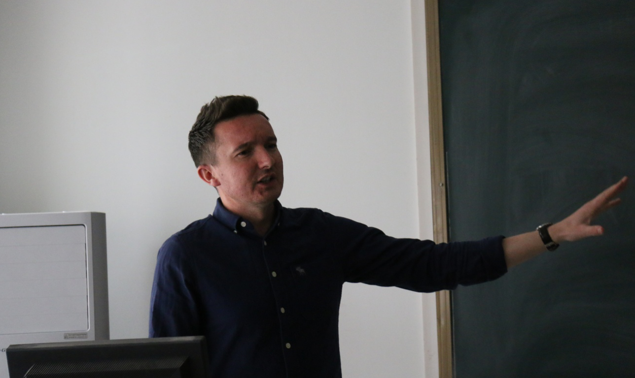 3月27日下午,商公司“双周学术论坛”第一场学术报告会在教学10号楼举行,公司邀请南开大学博士、天津外国语大学Christopher Clarke 为公司师生作了题为《信息科学教学与研究方法探究》的学术报告。商公司副经理周文杰副教授主持报告会并为师生作现场翻译,经济公司、教育公司及公司师生共70余人聆听了报告会。