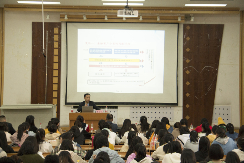 讲座伊始,李宗义先生就当前会计行业发展现状,结合自己在实务工作中遇到的案例,给同学们做了简要介绍。针对实务工作经验,李老师介绍了会计准则和会计工作当前的变革,其中着重介绍了《企业会计准则第22号——金融工具》中金融工具减值准备的相关内容;以及《企业会计准则第14号——收入》中收入的五步确认法。接着,李宗义先生带领同学们探索科技前沿,主要讲述了大数据计算对会计传统工作带来的冲击,李宗义先生表示人工智能将取代会计领域中一些简单重复的工作,要求同学们更深层次地认识到会计行业的发展趋势和重大变革。