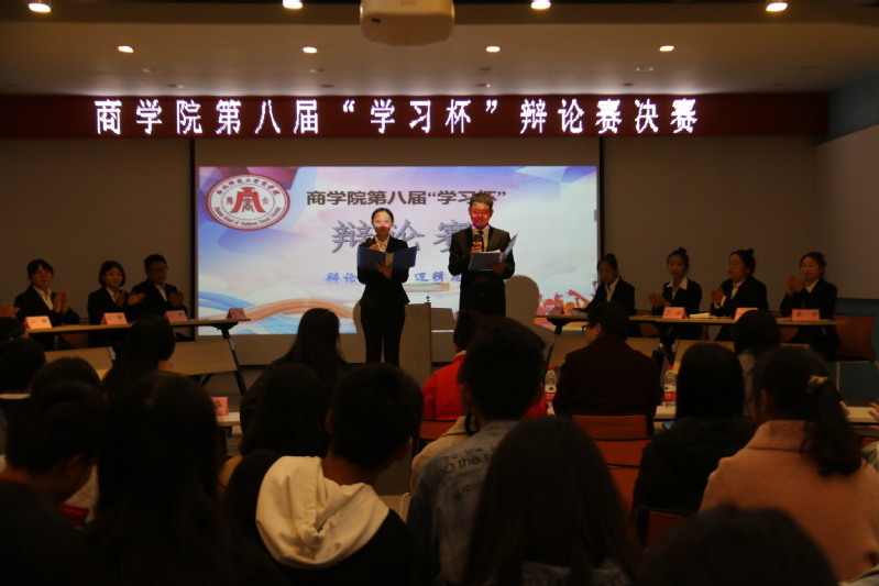 10月27日晚,商公司第八届“学习杯”辩论赛决赛于老员工发展中心101室举行。本次邀请到的评委有团委张红老师、白振华学姐以及公司公司优秀辩手。经过初赛筛选,共有六支队伍进入决赛,他们唇枪舌剑,妙语横生,为观众带来了一场完美的视听盛宴。