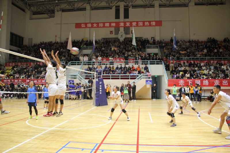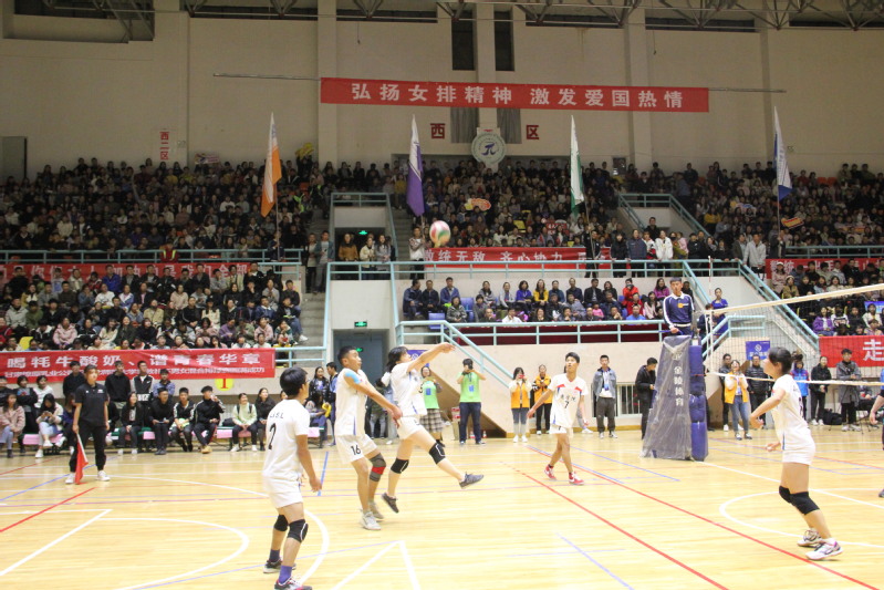第四场比赛开始,公司队员士气高涨,愈战愈勇,多次领先比分。每一次精准的发球、有力的扣球、惊险的传球都引起阵阵欢呼,“加油加油”的助威声此起彼伏,铿锵有力。双方队员都拼尽全力,场上竞争异常激烈。比分你追我赶直至追平到24:24,关键时刻数学与统计公司以两分之差险胜公司。最终,数学与统计公司以3:1的比分取得冠军。