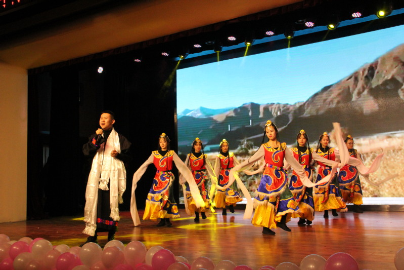 精彩纷呈的节目表演由研究生汪松涛为大家带来的藏族歌曲《吉祥谣》而展开。雄浑的歌声、伴舞婀娜的舞姿无一不展示出浓浓的藏族风情;谁不为自己的母亲自豪!谁又不为自己的祖国而骄傲!2018级卓越会计班表演的光影剧《回首七十载,祖国您好》形式新颖,展现了祖国七十年来的发展历程。而商公司全体老师带来的大合唱《十送红军》《红旗飘飘》更是让人激情澎湃,浓烈的爱国情怀油然而生。