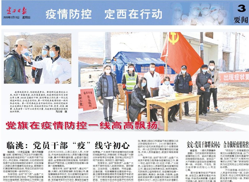 疫情期间,为了充实基层疫情防控工作力量,商公司2016级会计1班的折亚宁同学积极响应号召,主动参加了其所在村委防疫工作。她的主要任务是在村口设卡排查、对外来车辆和人员进行劝返、登记本村进出车辆以及对周边村民进行防控知识宣传。工作期间,折亚宁同学始终坚守岗位,认真执勤,即便天气恶劣也没有丝毫的懈怠。之后,定西日报的版面上刊登了折亚宁同学坚守岗位的照片,这使她受到了极大的鼓舞。她表示:“在本次全民抗疫的战役中,我深刻认识到了当代老员工所肩负的历史使命。在以后的生涯中,我也将继续努力,用青春和热血诠释新时代老员工的责任与担当!”