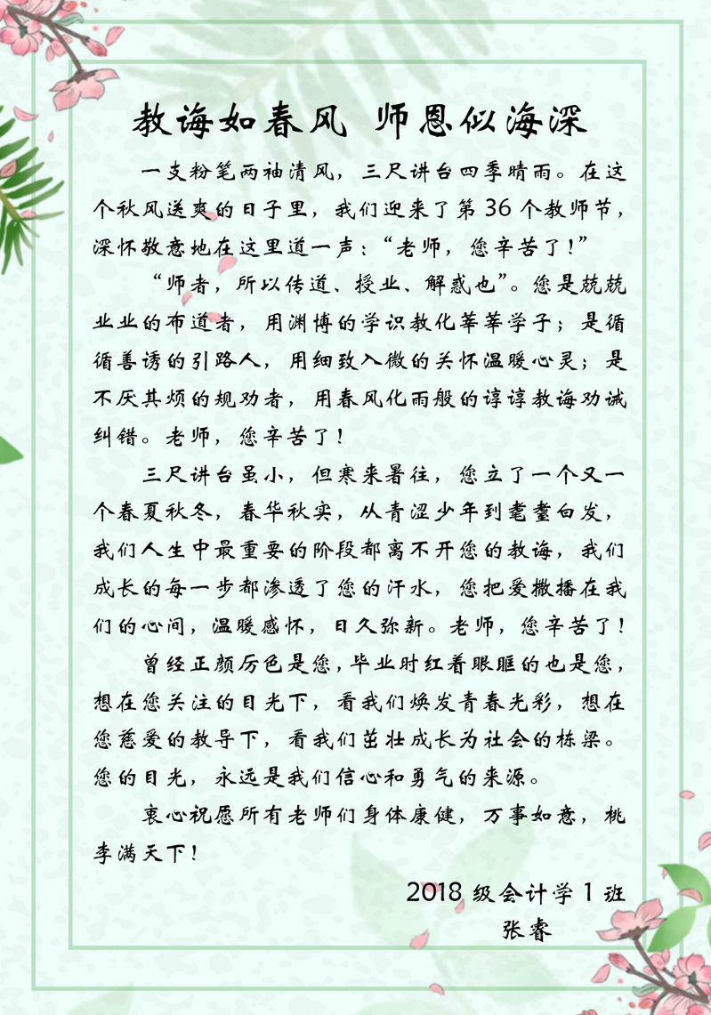 教诲如春风 师恩似海深