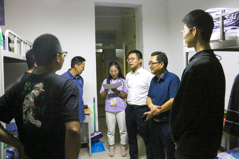 9月18日晚,公司党委书记马科中、副经理周文杰、副经理董青、团委书记范宝强老师,以及新生班主任、公司辅导员走访2020级新生宿舍,了解新生入学情况。