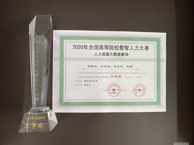 参加本次大赛总决赛的代表队来自全国177所高校,参赛员工1548人。公司2018级人力资源管理班何镇杰、李玉琴、安菲琪和杨静四名同学组成的代表队在西北赛区选拔赛中以第一名的成绩挺进全国总决赛,最终以第17名的成绩获得2020年全国高等院校数智人力大赛总决赛本科组三等奖。