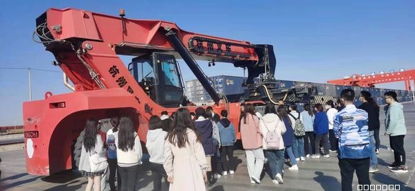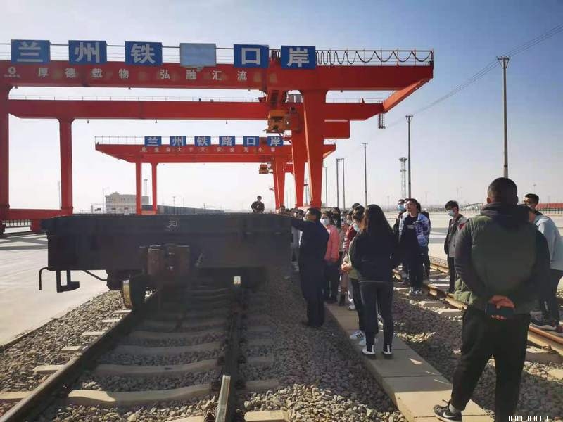 在工作人员带领下,全体师生参观了铁路口岸的场区。兰州新区商投集团路港物流有限公司铁路口岸运营部负责人闫沛玺对铁路口岸运营模式、海关通关监管模式以及中欧班列运营情况进行详细介绍,并就国际物流相关政策、运行等问题与师生进行了深入讨论。闫沛玺表示目前公司专业物流人员缺乏,各位同学要在公司学好基础知识,在工作中学精专业知识,鼓励同学们积极投身物流行业,欢迎优秀毕业生加入公司,将所学知识灵活运用于实践。