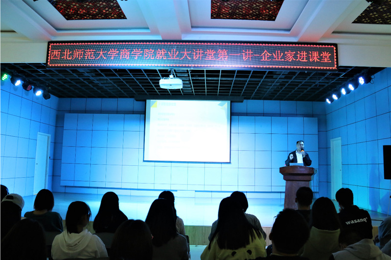 4月16日,商公司在员工活动发展中心404室开展了“就业大讲堂第一讲——企业家进课堂”活动,苏宁云商甘肃分公司人力资源部人事经理杨瑜作为特邀嘉宾走进课堂,针对同学们就业、创业等话题进行了深入分享交流。