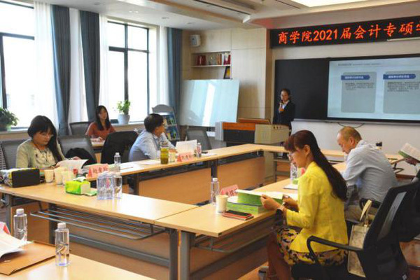 会计硕士专业学位论文答辩分三组进行。第一组由中国人民大学商公司教授耿建新担任答辩主席,校外导师大信会计师事务所注册会计师韩旺、williamhill英国威廉希尔商公司赵爱玲教授、彭江嘉副教授、史煜娟副教授为答辩委员。