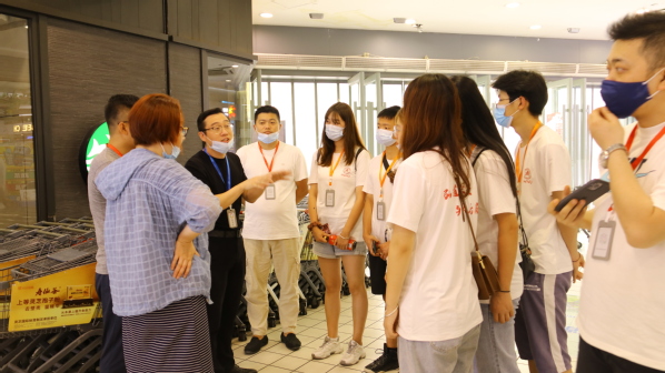 6月25日上午,在“实习家”老师的带领下,创业就业研学团参观了杭州联华华商集团有限公司。在与联华工作人员的交谈中,研学团了解到联华华商集团拥有自己的商品基地,并且采用的是“B2C+B2B”的经营模式,真实感受到了联华华商规范的操作、现代化的经营技术以及前瞻性的经营理念。在联华华商集团旗下一家超市里,员工们观看了超市无人结款区的运行过程,电子化、智能化甚至是无人化已经成为了超市发展的趋势。紧接着,研学团参观了联华华商集团的员工宿舍“新青年宿舍”。