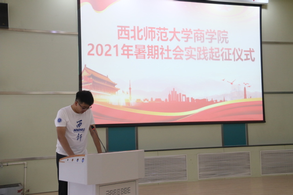 仪式在庄严的国歌声中拉开序幕。范宝强老师介绍了本次社会实践的具体情况,本次暑期社会实践共有8支实践团队,涵盖红色之旅、社会调研、乡村振兴、创新创业等4个主题类别。他强调要把安全放在首位,密切关注周边环境,做好预防;其次要注重方式方法,突出实践效果,并希望同学们珍惜实践机会,在实践中增长才干。