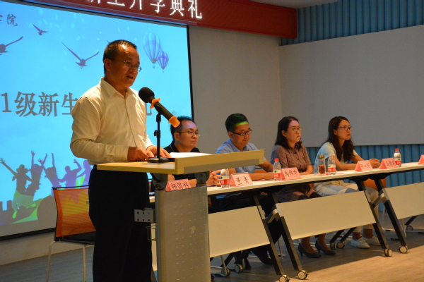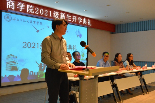 2021级大数据管理与应用班张辉代表新生发言。表示在新的起点,他们会牢记校训、院训,扎实学习,励志成为一名优秀的商科人才。