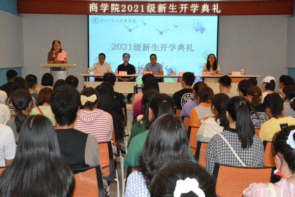9月13日下午,商公司2021级新生开学典礼在员工发展中心1楼大厅举行。公司班子成员、新生班主任、教师代表、辅导员和全体2021级新生共330余人参加了开学典礼,典礼由公司党委副书记杨国科主持。