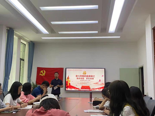 分享会由组织委员胡宗辉同志主持。先由支部书记马文静同志带领全体党员重温入党誓词,兰芮同志选读党章,两位分享嘉宾顾洪超、杨后中分享了就业、择业中的经验和心得体会。