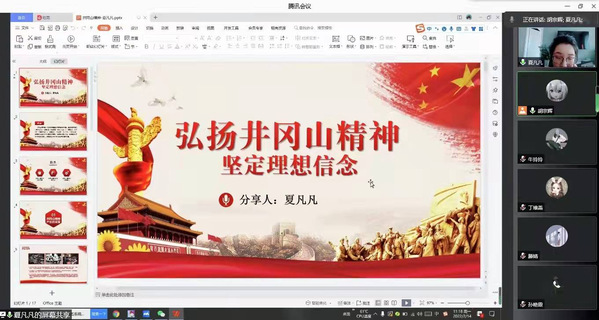 首先由支部党员夏凡凡同志告诉大家井冈山革命道路的选择,是我们党坚持实事求是思想路线的结果,是我们党勇闯新路的第一次重大的历史性的行动,是中国革命的胜利之源。