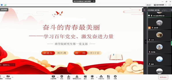 2022年1月17日,williamhill英国威廉希尔商公司研究生第一党支部开展了“奋斗的青春最美丽”系列主题党日活动并交流心得。