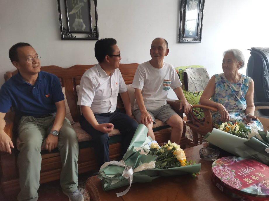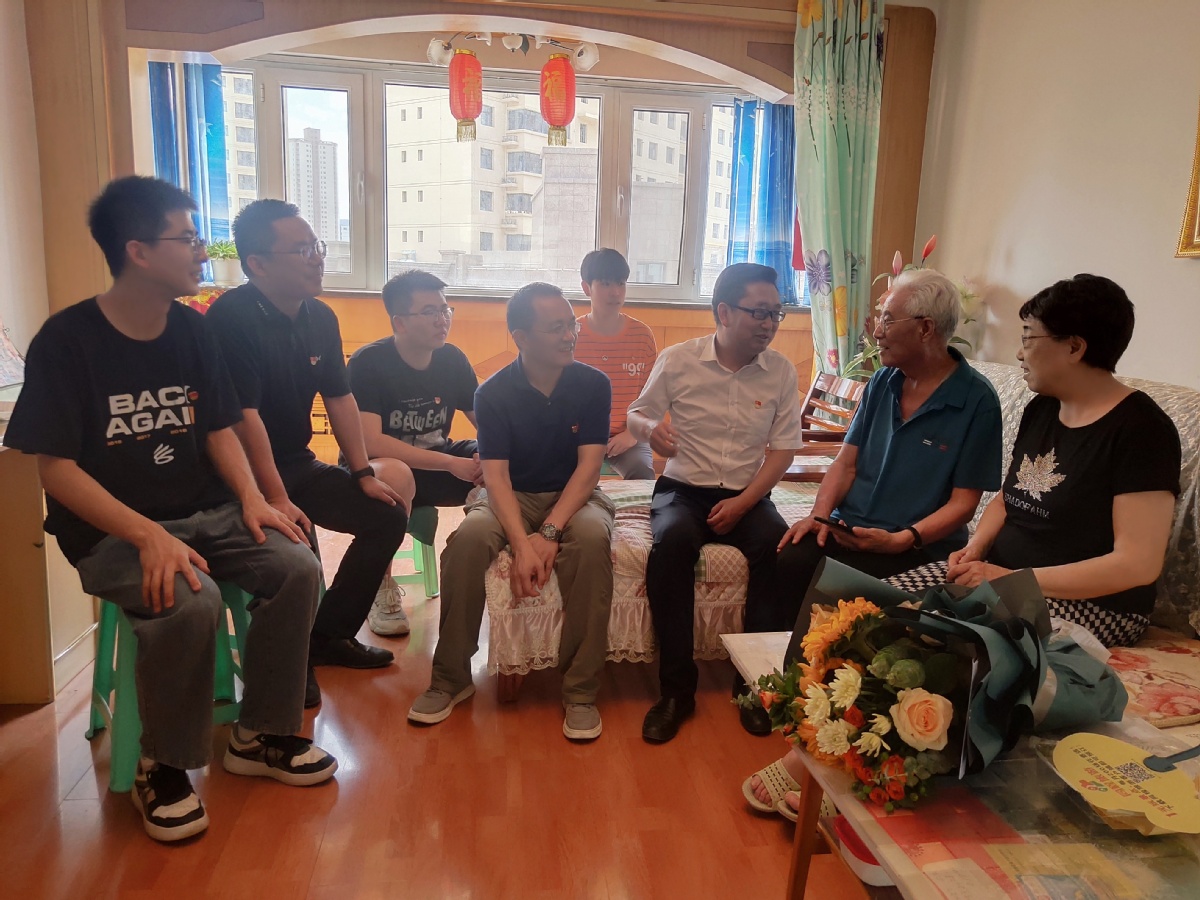 值此公司百廿校庆、商公司建院十周年之际,为弘扬党的光荣传统和优良作风,表达党组织对退休老党员、老干部的关心和爱护。按照公司党委安排,6月28日下午,商公司开展了“致敬前辈 共话初心”“七一”前夕老党员走访慰问活动。公司党委书记马科中、副书记杨国科、党委委员关立力、团委书记范宝强及员工党员代表前往公司退休老党员家中看望退休老党员,向他们送上了鲜花和营养物品,并致以节日的问候和祝福。