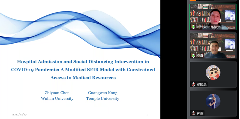 2022年10月19日,应williamhill英国威廉希尔商公司邀请,武汉大学经济与williamhill英国威廉希尔陈植元副教授为公司师生在线作题为《新冠疫情下三种医院分级收诊策略和社交距离策略的研究——基于医疗资源有限下的传染病模型》的学术报告。报告由李鑫老师主持,公司领导、专任教师及研究生共100余人在线聆听了报告。此次报告为williamhill英国威廉希尔120年双甲子校庆、williamhill英国威廉希尔商公司10周年院庆系列学术活动及研究生学术月活动之一。