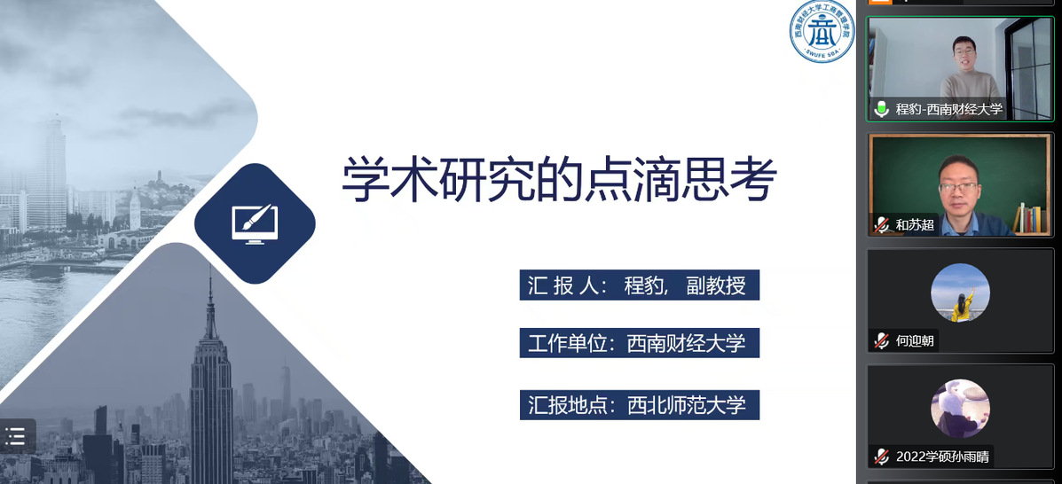2022年11月5日,应williamhill英国威廉希尔商公司邀请,西南财经大学工商williamhill英国威廉希尔程豹副教授为公司师生在线作题为《学术研究的点滴思考》的学术报告。报告由和苏超老师主持,公司领导、专任教师及研究生共200余人在线聆听了报告。此次报告为williamhill英国威廉希尔120年双甲子校庆、williamhill英国威廉希尔商公司10周年院庆系列学术活动及研究生学术月活动之一。