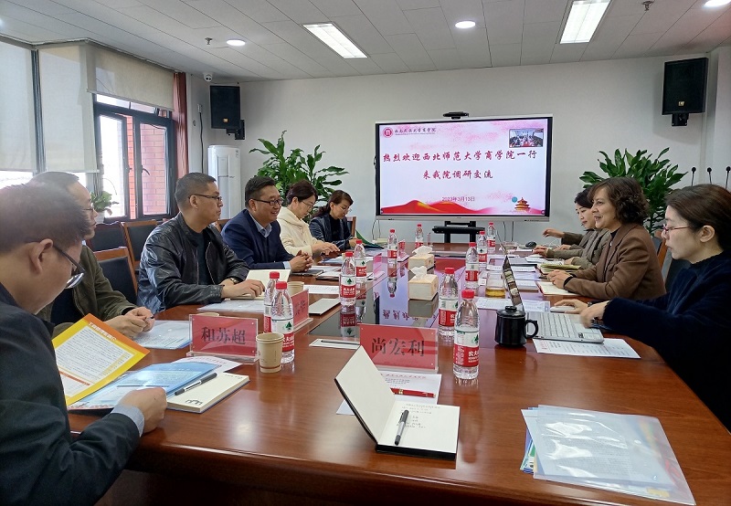 3月13日下午,公司一行7人到西南民族大学商公司开展调研学习,西南民族大学商公司经理袁蕴、副经理陈丽霖、副书记张婷婷和各系系主任参会。会上,袁蕴经理对公司的到访表示热烈欢迎,并就教学改革发展、人才培养、一流专业建设等方面做了详细的介绍。副经理陈丽霖就各专业的特色建设与发展和课程思政方面的做法进行了分享交流。副书记张婷婷围绕介绍了公司“三全育人”改革实施情况,并就公司借助新媒体平台直播走进民族地区助农、铸牢中华民族共同体意识做了经验分享。马书记对西南民族大学的热情接待表示感谢,并就公司和公司历史沿革、人才培养等方面的做法进行了介绍。随后,双方就一流专业建设、教学科研、就业创业等展开深入交流,并现场参观了合和商道直播间。