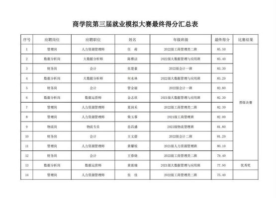 至此,第三届就业模拟大赛初赛圆满落幕。同时,预祝各位晋级的选手在决赛挑战中再创佳绩!