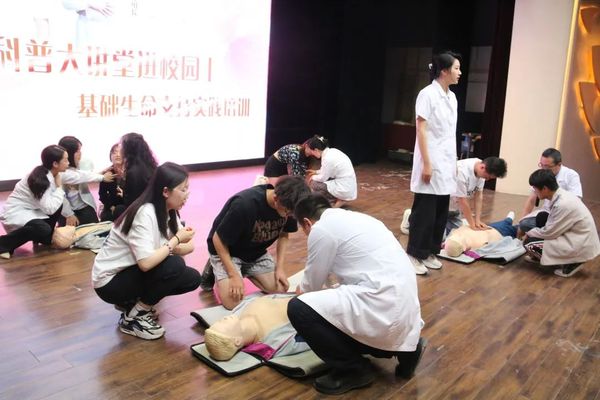 随后,甘肃省妇幼保健院专家团队利用成人、儿童、婴儿三类模型,为同学们现场演示了当人突然晕倒和食物或异物卡喉窒息时应采取的措施,全面、深入地剖析了心肺复苏、海姆立克急救法等应急救护知识。