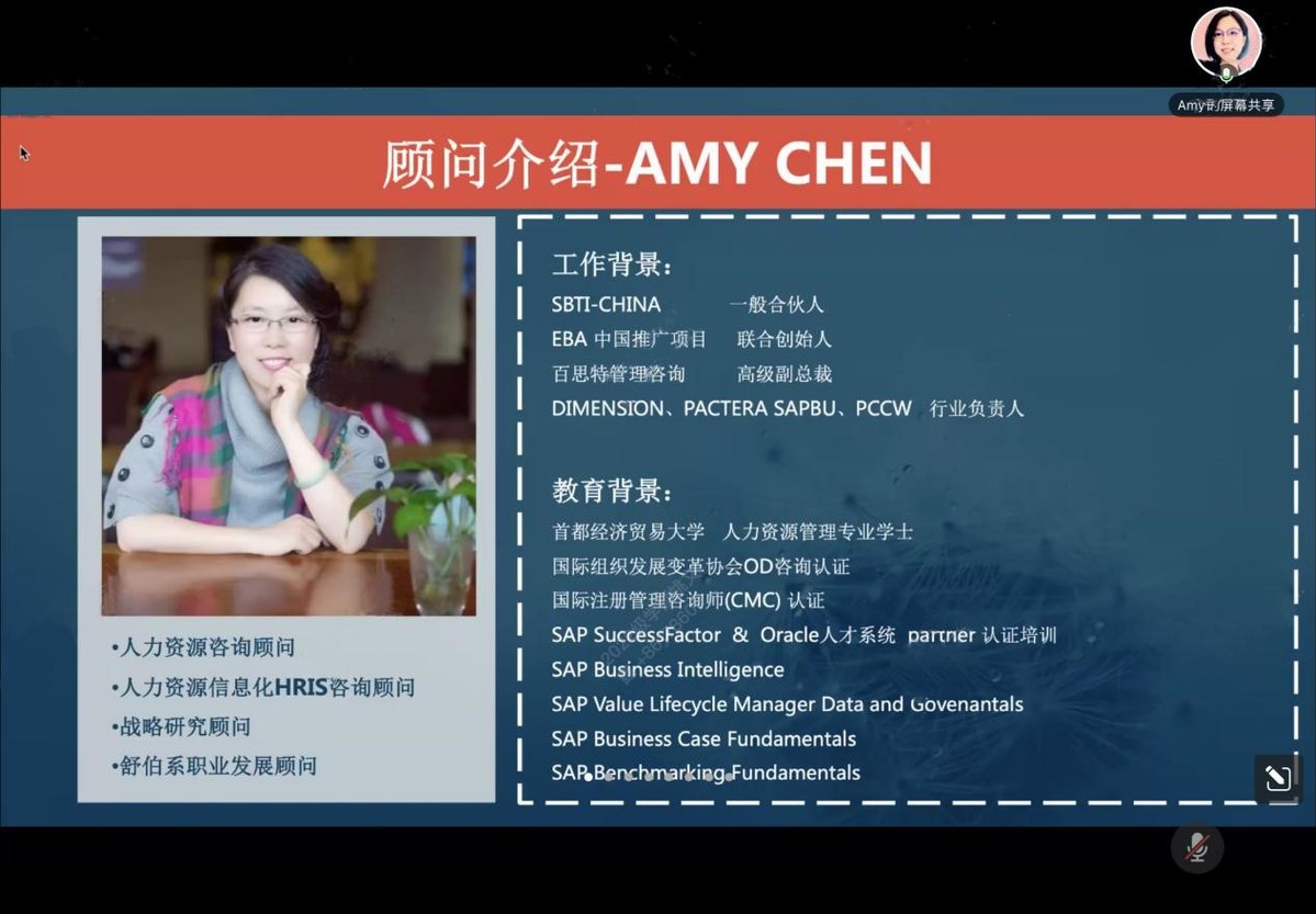 陈晓筠,SBTI-CHIAN一般合伙人,EBA中国推广项目联合创始人,百斯特管理咨询公司高级副总裁,DIMENSION、PACTERASAPBU、PCCW行业负责人,获国际组织发展变革协会OD咨询认证、国际注册管理咨询师(CMC)认证等。擅长人力资源管理咨询、人才测量、职业发展诊断与咨询、职业辅导等。曾为京能源深、海军701工厂、中粮番茄、伊利集团、城建国际部、云享云、山西安装、辽宁电力等多家大型企业提供人力资源管理咨询服务。