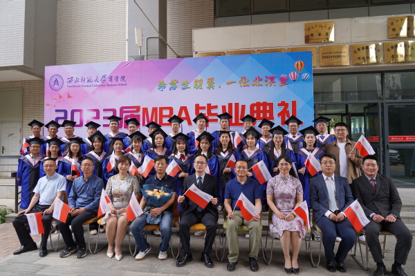 毕业典礼上,董青经理祝贺2023届MBA毕业生顺利毕业,希望同学们在未来的职业生涯和人生道路上谨记校训、院训,秉承西北师大MBA人的精神理念,成就自己的美好人生。张学鹏教授代表全院老师,为毕业生们表达了祝福,嘱托同学们要把握挑战与机遇,脱颖而出,成为商业精英,成就人生梦想,回馈社会和国家。员工代表吕兴邦祝福毕业生们多钱善贾、钟鸣鼎食、海阔天空、神采奕奕、龙马精神;毕业生代表戴维斌代表全体毕业生,表达了对公司、公司、老师的感谢和祝福。