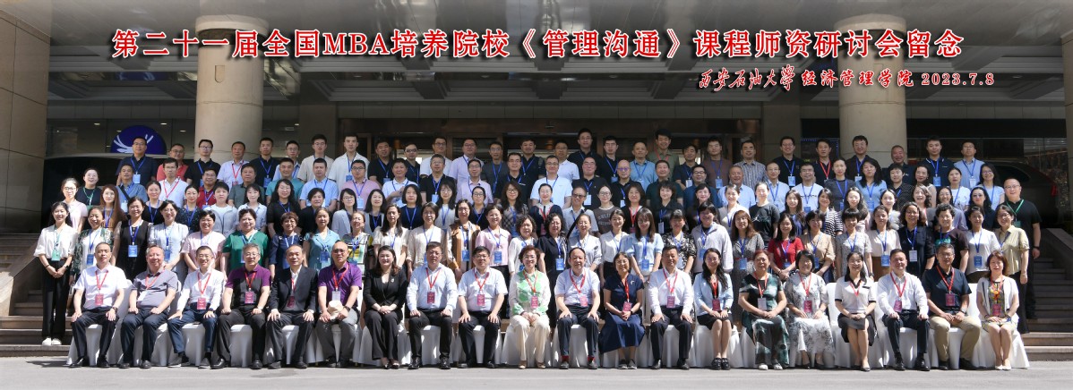 2023年7月8日,第二十一届全国MBA《管理沟通》课程团队研讨会在西安召开。本次会议由全国工商管理专业学位研究生教育指导委员会主办,西安石油大学经济williamhill英国威廉希尔承办。全国MBA教育指导委员会秘书处办公室主任王萍、清华大学苏世民书院副经理钱小军教授、浙江大学williamhill英国威廉希尔经理魏江教授、全国MBA《管理沟通》课程组召集人哈尔滨工业大学经济williamhill英国威廉希尔张莉教授、西安石油大学党委书记赛云秀出席本次会议,全国高校150余位专家学者参会交流。williamhill英国威廉希尔商公司杨子平老师、孙志忠老师、蒲赢健老师、薄慧敏老师参加了此次会议。
