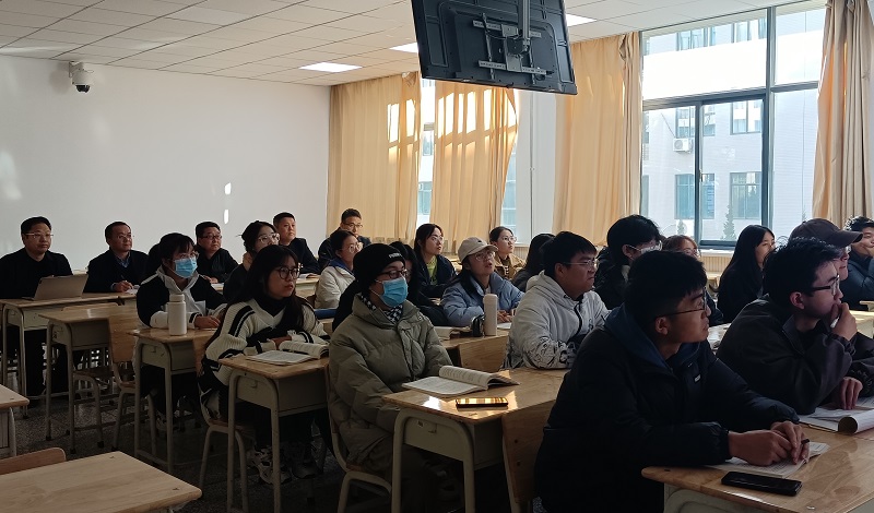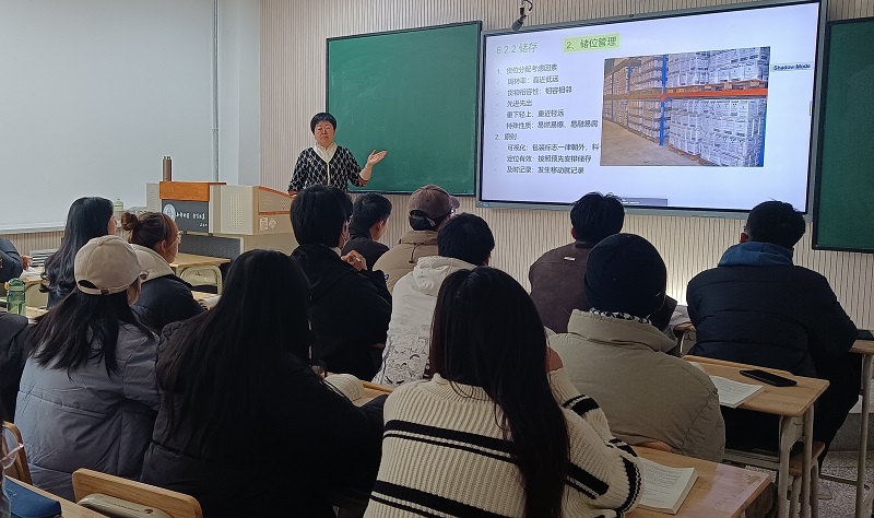 在致公楼A区214教室,公司信息管理系教师张晓燕副教授开展《仓储与配送管理》课程思政示范教学,公司党委书记马科中、副书记杨国科参加,近三年入职的青年教师到场观摩学习。