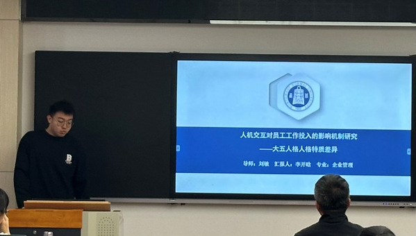 李开晗同学的研究关注人机交互及其引发的AI焦虑,探究其对员工工作投入的影响。认为AI焦虑不仅仅是对技术变革的担忧,更反映了员工对未知因素的不确定感和对自身能力的怀疑;大五人格特质中不同的人格特质可能导致员工对AI技术的接受程度、适应能力及对焦虑的应对方式存在显著差异,从而影响工作投入水平。
