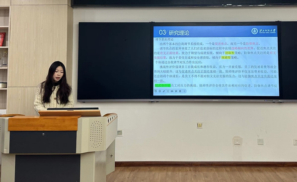 2023年12月14日,商公司“商赢未来系列讲坛”第八讲在致公楼C区506室开展。2022级企业管理专业研究生丁乐、李开晗分别作题为《顾客授权行为对员工服务创新行为的影响》和《人机交互对员工工作投入的影响机制研究——大五人格特质差异》的学术成果汇报。活动由唐浩老师主持,公司领导、专任教师及研究生共50余人参加。