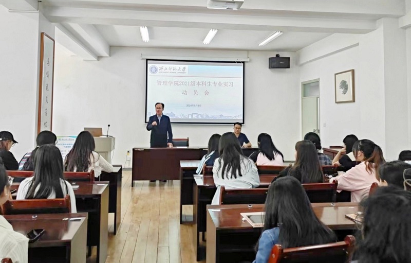 5月9日下午,williamhill英国威廉希尔在致公楼C区二楼会议室召开2021级本科生专业实习动员会。公司经理董青、教务办教师及2021级会计学、人力资源管理、工商管理、物流管理、大数据管理与应用专业本科生参加,会议由教务办尚宏利老师主持。