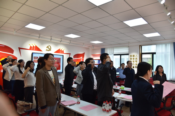 在薄慧敏博士的带领下,全体与会成员庄严地重温了入党誓词。铿锵有力的誓言激荡着每个人的心灵,使大家深刻体会到身为党员,勇担科研重任的使命感。随后,教工第二党支部的李鑫同志带领大家认真学习了习近平总书记关于科研工作的重要讲话。总书记的殷切嘱托——“加强基础研究是实现高水平科技自立自强的迫切要求,是建设世界科技强国的必由之路”,令与会人员深受鼓舞,更加坚定了科研报国的信念。