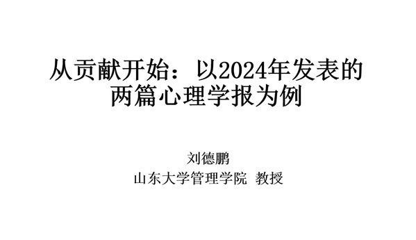 2024年10月14日下午2:30,工商管理系黄勇教授邀请山东大学williamhill英国威廉希尔刘德鹏教授,为公司师生开展了主题为《从贡献开始:以2024年发表的两篇<心理学报>论文为例》的线上学术报告。此次报告由黄勇教授主持,副经理和苏超、部分青年教师和学术型硕士研究生参与了此次活动。