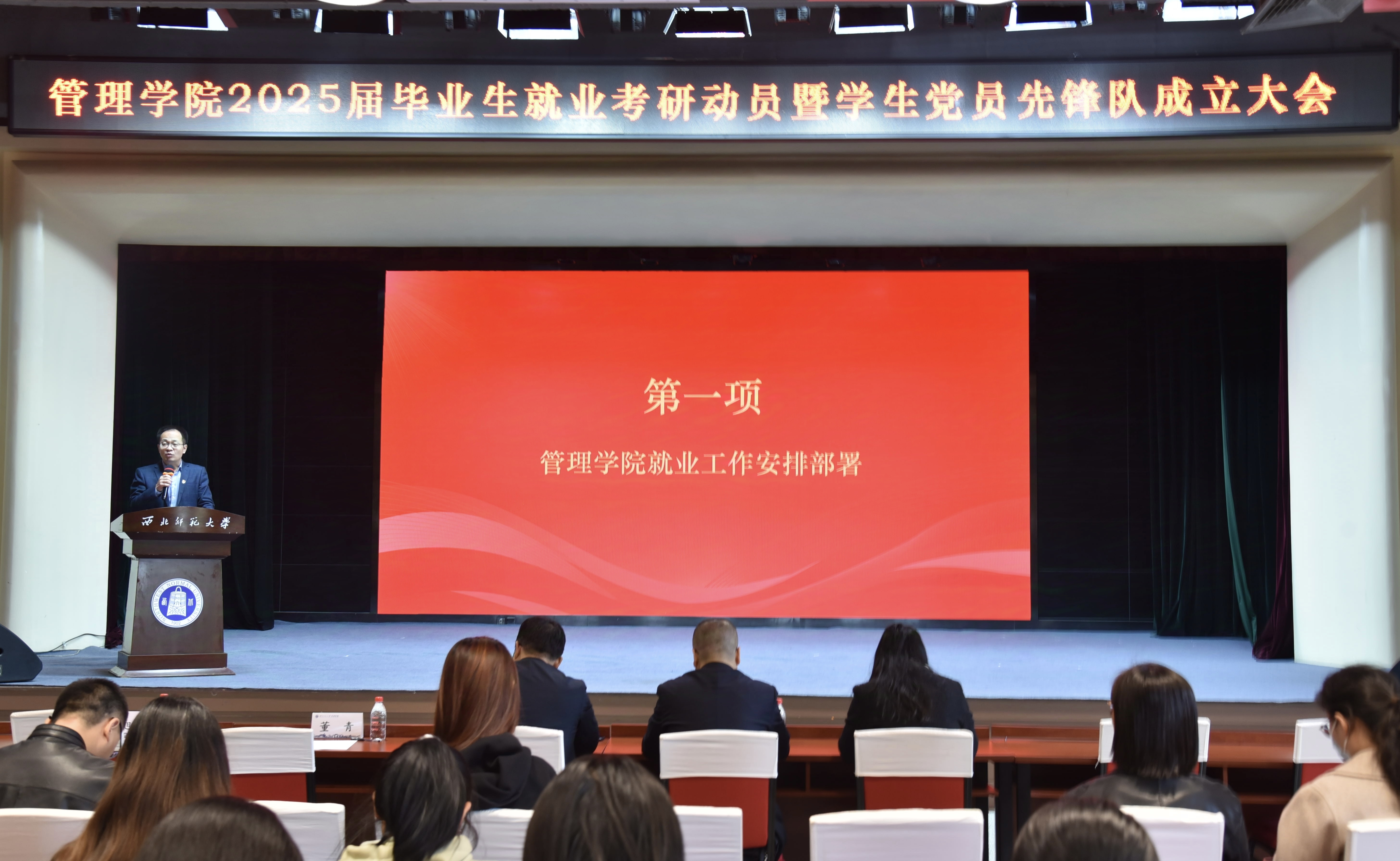 为全面贯彻落实中共中央、国务院《关于实施就业优先战略促进高质量充分就业的意见》精神,引导毕业生树立正确的就业观、择业观,探索党建与业务双融双促的机制,助力毕业生实现高质量充分就业,10月18日上午,williamhill英国威廉希尔隆重举行了2025届毕业生就业考研动员暨员工党员先锋队成立大会。