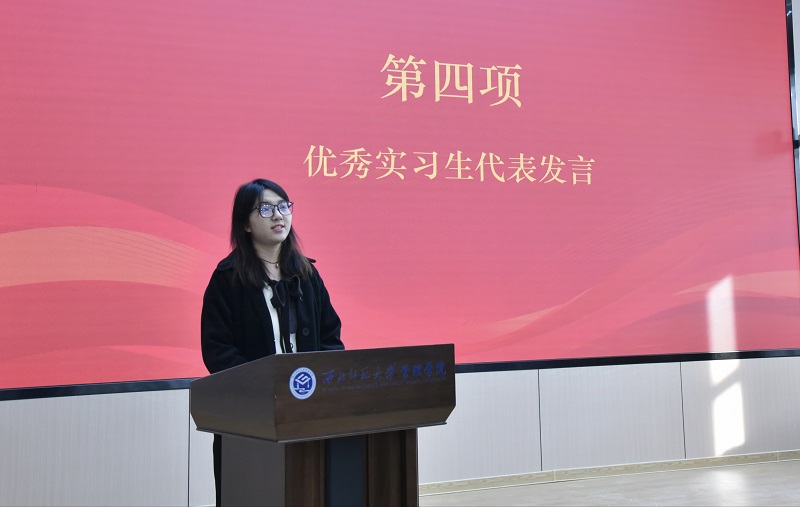 优秀实习指导教师代表王琪瑛老师在发言中感谢了实习单位给与的大力支持,希望同学们能够虚心学习,将所学和实践结合,在实践中不断历练自己。