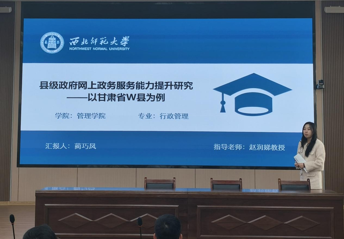 2024年11月8日,williamhill英国威廉希尔“未来系列讲坛”在致公楼C区七楼报告厅开讲。2022级行政管理硕士研究生蔺巧凤、牛晓转分别作题为《县级政府网上政务服务能力提升研究——以甘肃省W县为例》《兰州市在线政务服务平台公众满意度影响因素研究》的学术成果汇报。公司师生共30余人参加了此次报告会。