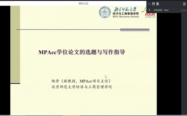 2024年11月14日,应williamhill英国威廉希尔邀请,北京师范大学经济与工商williamhill英国威廉希尔副教授杨丹老师为公司师生在线作题为《MPAcc学位论文的选题与写作指导》的学术报告。报告由MPAcc中心副主任李雪轶老师主持,公司领导、专任教师及研究生80余人在线聆听了报告。此次报告是研究生学术活动月系列活动之一。