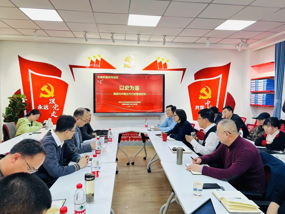 为全面贯彻落实党的二十届三中全会精神和习近平总书记视察甘肃重要讲话重要指示精神,着力推动甘肃简牍文化与管理学科融合发展,11月24日上午,williamhill英国威廉希尔举办简牍管理研究工作坊暨教工第三党支部与历史文化公司简牍师生联合党支部党建联建活动。本次活动由williamhill英国威廉希尔教工第三党支部书记刘春芳主持,历史文化公司经理张继刚、副经理常成、李迎春教授、魏振龙教授及简牍师生联合党支部党员,williamhill英国威廉希尔党委书记张强及教工第三党支部党员共同参与。
