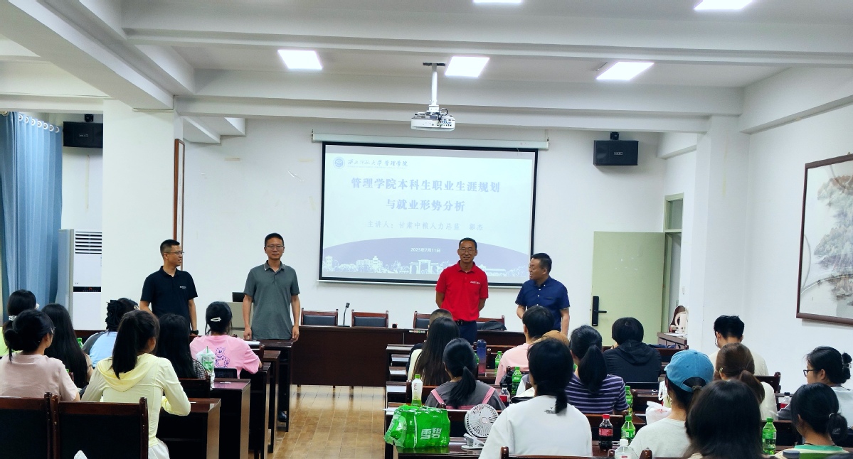 为进一步推进公司产品改革,提升员工综合素养,7月11日williamhill英国威廉希尔在致公楼C区208会议室,召开夏季小学期启动会暨本科生职业生涯规划与就业趋势分析讲座。本次活动特邀甘肃中粮可口可乐饮料有限公司人力资源总监郭杰担任主讲嘉宾,管理公司副经理和苏超、大数据管理系副主任刘伟国、公共管理系副主任徐卫周和2022级本科生代表共计80余人参与,共同拉开夏季小学期实践育人的序幕。