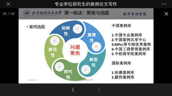 2020年11月26日19:00-21:00,北京航空航天大学经济williamhill英国威廉希尔欧阳桃花教授在线上作了题为《专业学位研究生的案例论文写作》的专题讲座。公司案例中心积极组织2020级、2019级MBA学员在线聆听了此次讲座。
