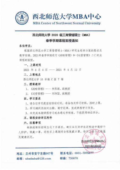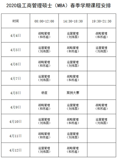 商公司2020级工商管理硕士(MBA)春季学期课程面授通知