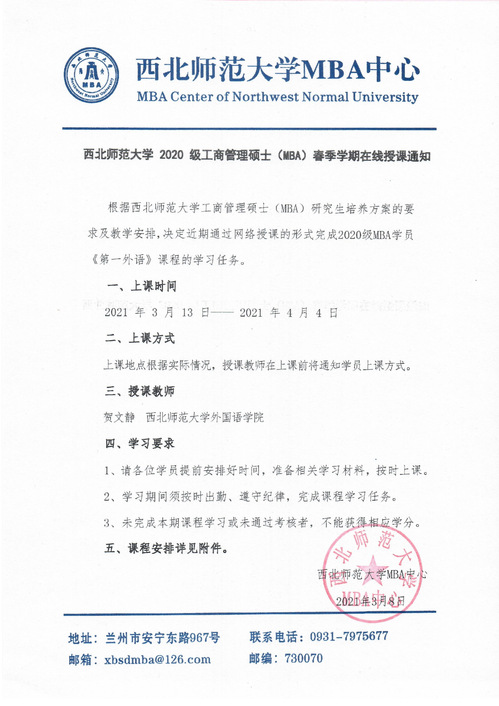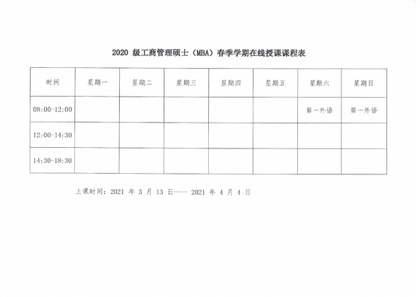 商公司2020级工商管理硕士(MBA)春季学期在线授课通知