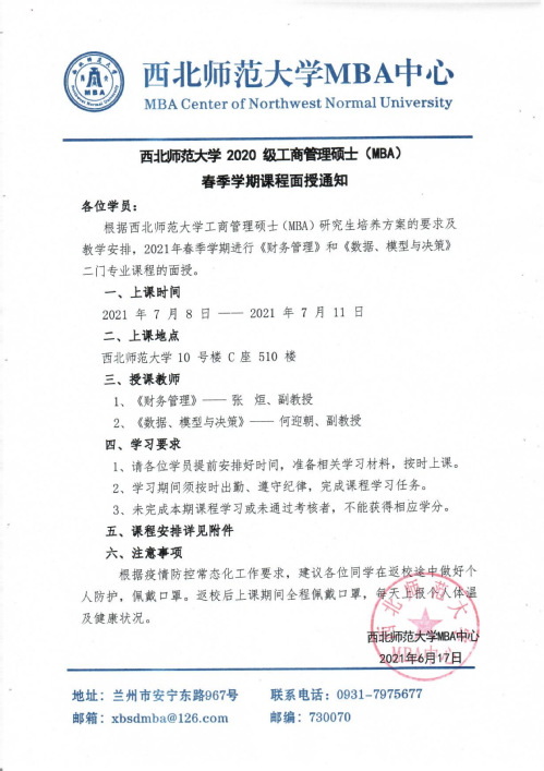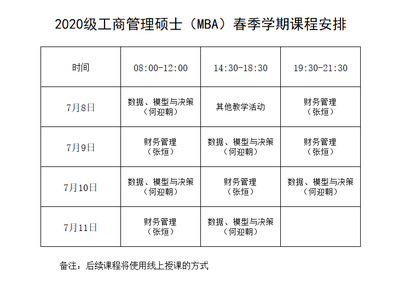 williamhill英国威廉希尔 2020 级工商管理硕士(MBA)春季学期课程面授通知(二)
