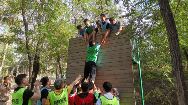 之后,以组为单位,分别完成了汉诺塔密码、高空断桥、众人颠球、毕业墙等项目的训练。这些项目的设计,旨在使学员通过这些实训活动,领悟步骤流程、团队协作的重要性;为了团队荣誉,勇于克服自身的心理障碍,勇敢迈出突破性新一步的关键性;为了一个共同的目标,积极配合,齐心协力,不断尝试、探索有效方法的必要性;以及大家各展所长、分工协作、勇于奉献、团结一致,终会跨越重重障碍、实现团队目标的可能性。